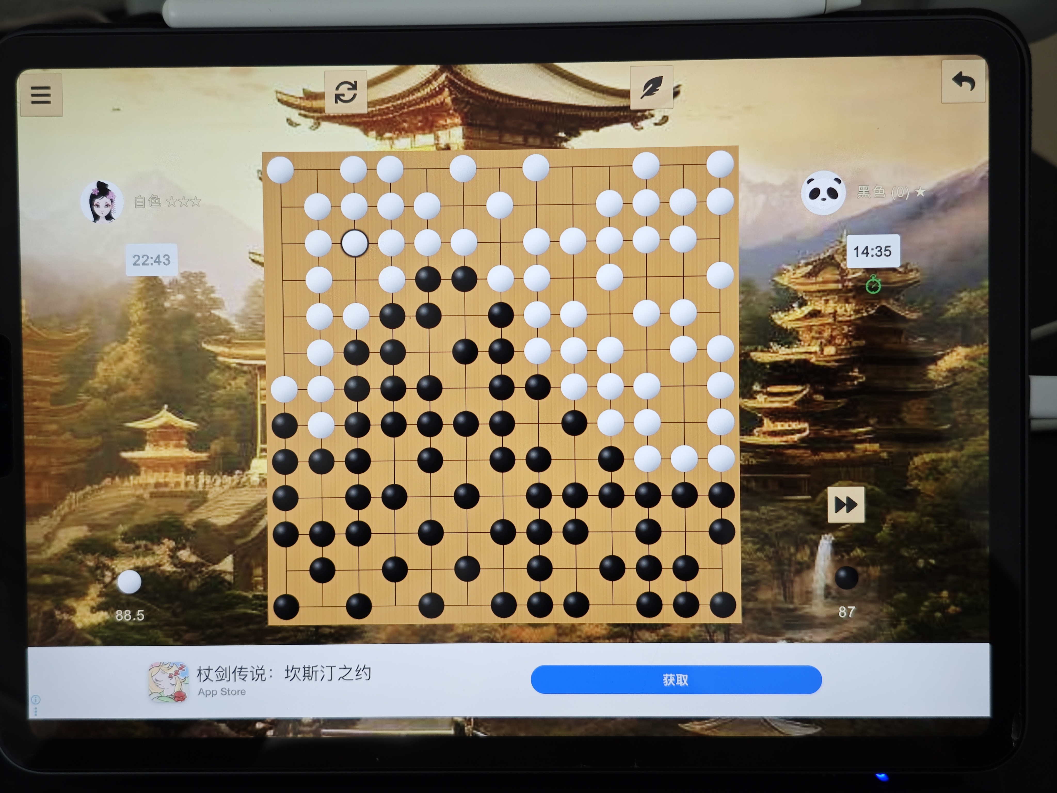 一开始就在争夺主要地盘,但是被严防死守,收效甚微,而对方经常顺手偷几个小子,稳扎稳打。由于主要心力都被用于大局,小局基本做舍弃处理,最后落了个输一子半的境地。忽然有点感叹自己平时做事,一直想做个宏大叙事,但往往疏忽了细节之处,也失去了精雕细琢的耐心,变成了所谓的样样通样样松~~~